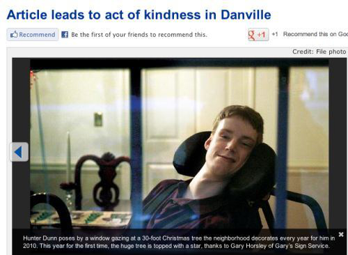 Фотография трехлетней давности Хантера Данна из городка Дэнвилл. Он, ничего не подозревая, смотрит в окно на 10-метровую Рождественскую елку и улыбается В октябре про Дэвида рассказал сайт TheCHIVE – и тот стал сенсацией, за один день количество его «последователей» выросло на 7500 человек.